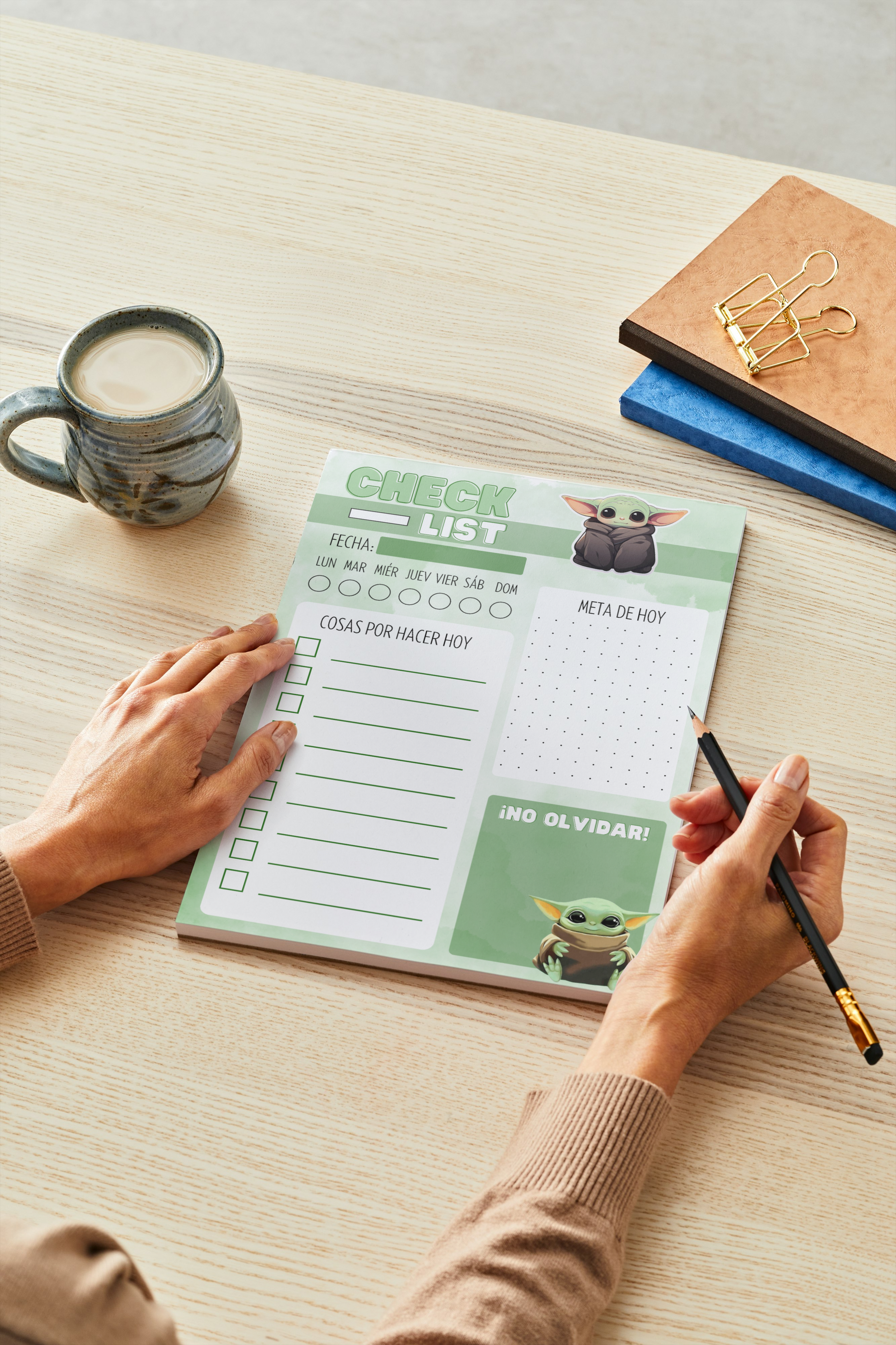 Este checklist inspirado en Baby Yoda es perfecto para planificar tus tareas diarias de forma divertida y visual. Ideal para amantes de la papelería, estudiantes, emprendedores o cualquier persona que disfrute del orden con estilo.