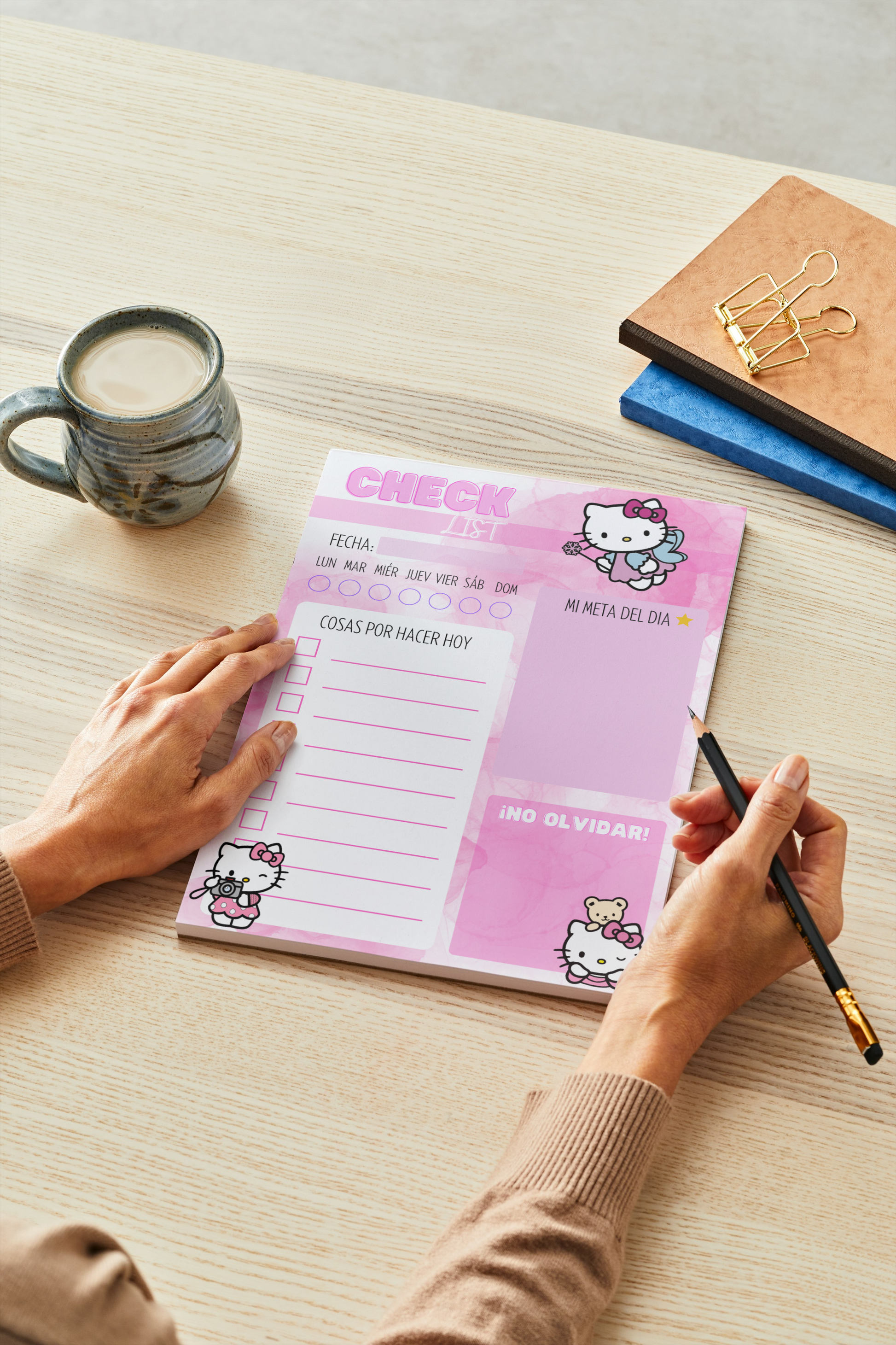 Este checklist de Hello Kitty es perfecto para quienes disfrutan de planificar sus días con un toque adorable. Ideal para estudiantes, emprendedoras, niñas o fans de la papelería kawaii.