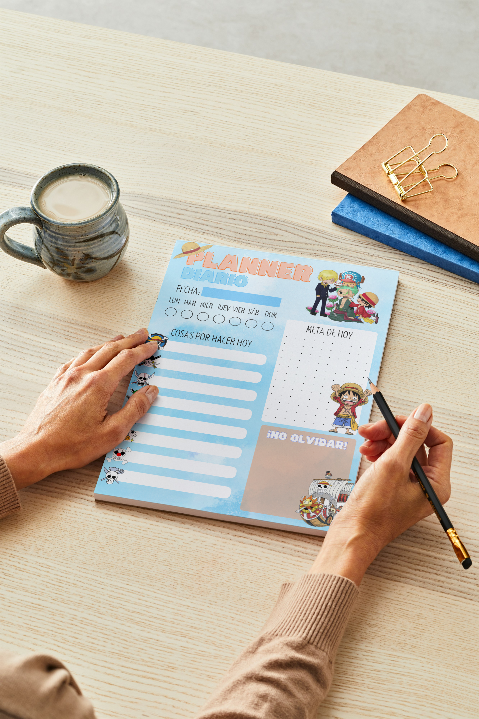 Este increíble planner diario inspirado en One Piece es ideal para quienes aman combinar planificación y aventura. Con Luffy y su tripulación, organizar tus tareas diarias será mucho más entretenido.